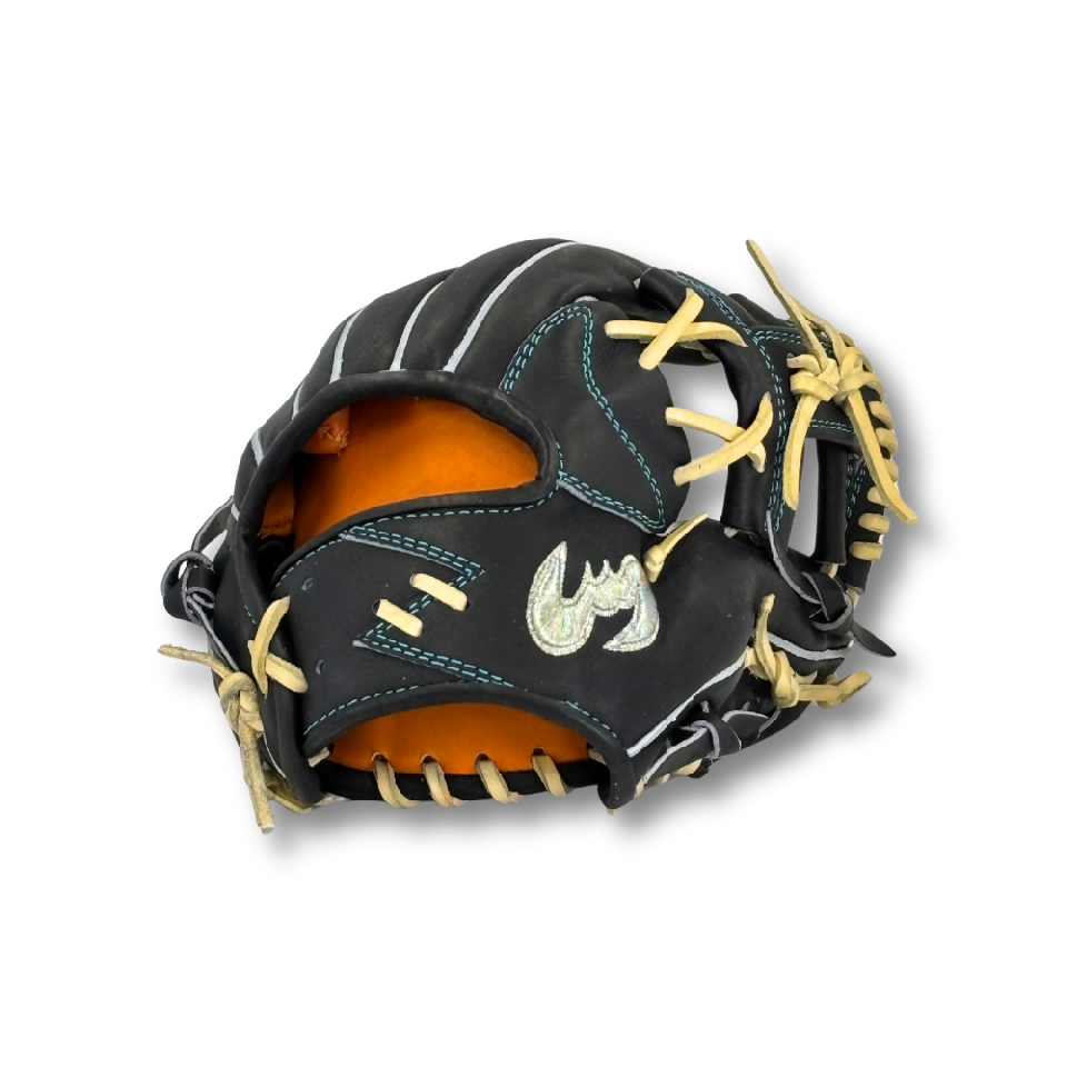 ![]() 【このグラブの大きさの目安】 ●赤線は土手部中央から人差し指先端までの長さを示しております。(1インチ=2.54センチ) ※天然皮革のため、革の伸び等で多少誤差が生じる場合もございます。 |