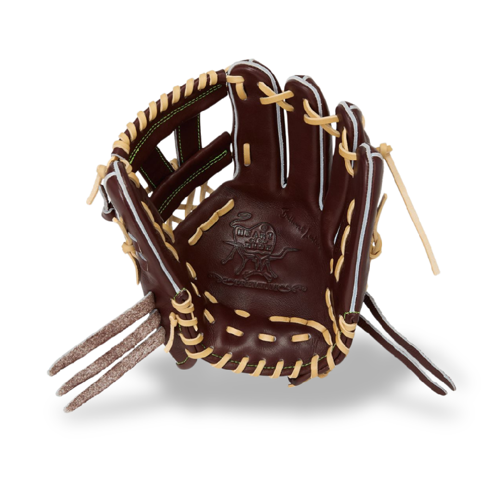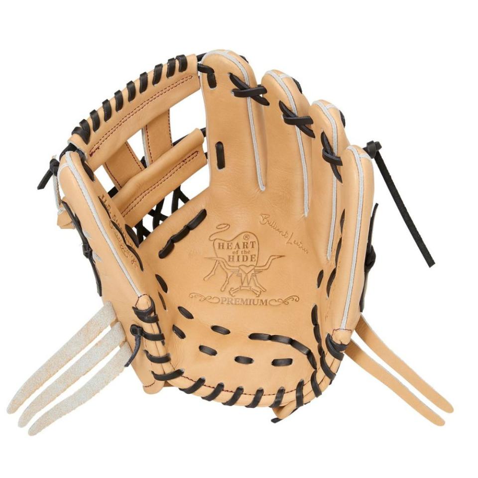 ![]() 【このグラブの大きさの目安】 ●赤線は土手部中央から人差し指先端までの長さを示しております。(1インチ=2.54センチ) ※天然皮革のため、革の伸び等で多少誤差が生じる場合もございます。 |