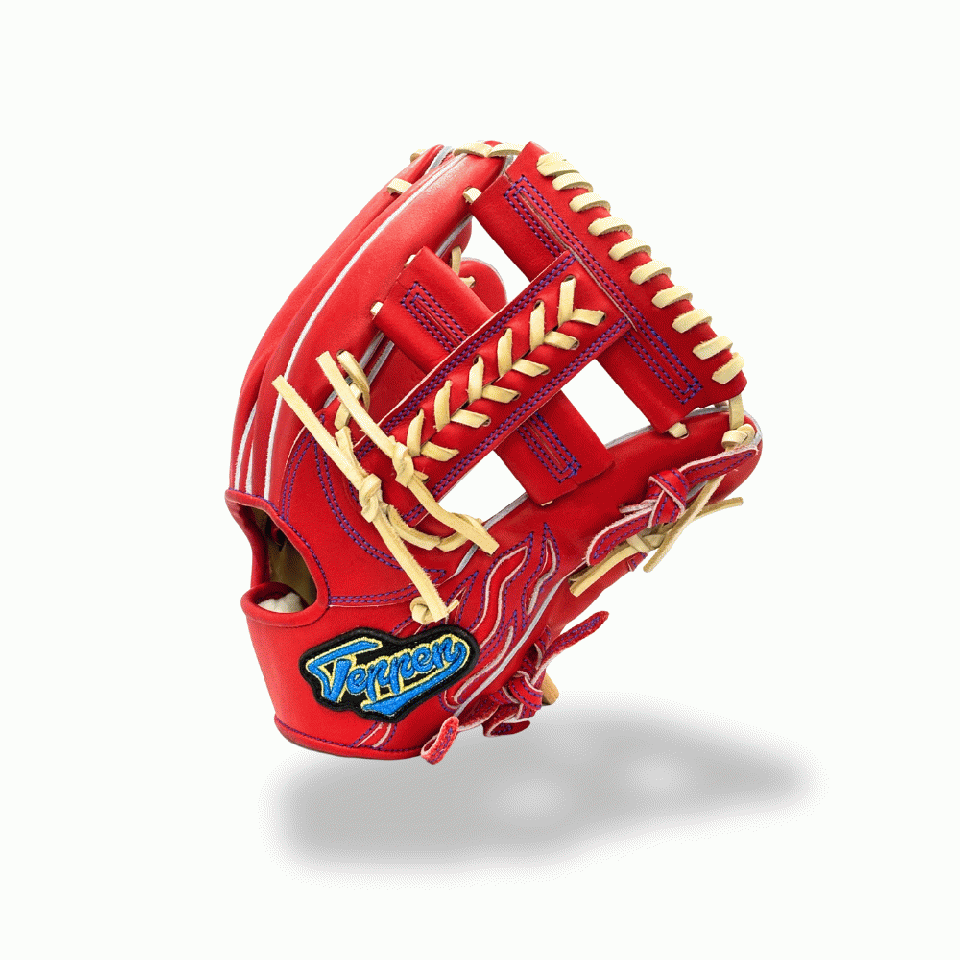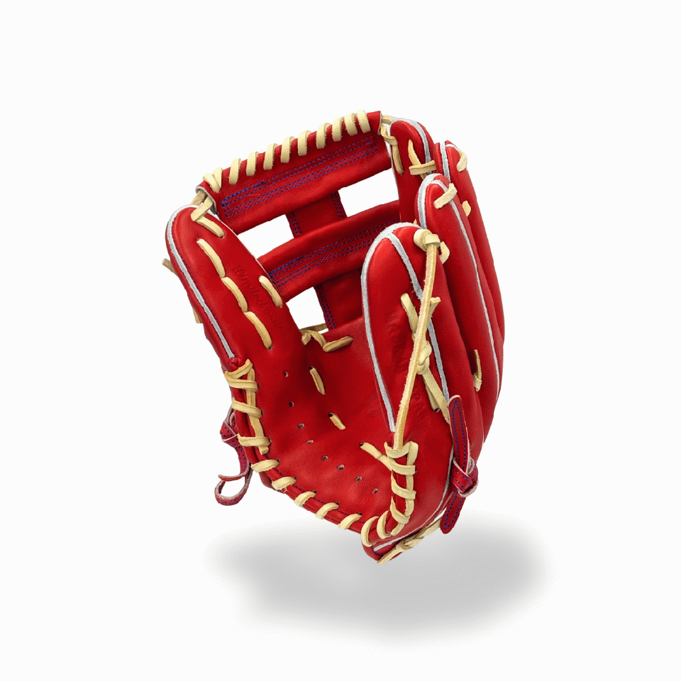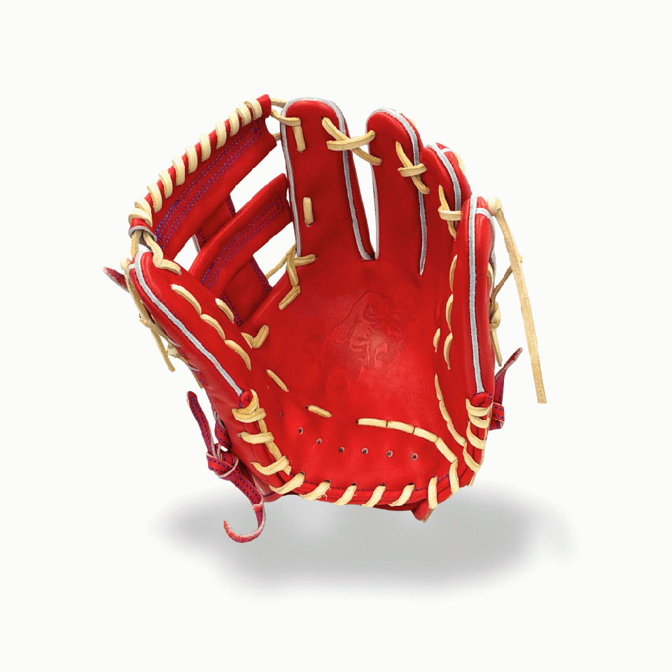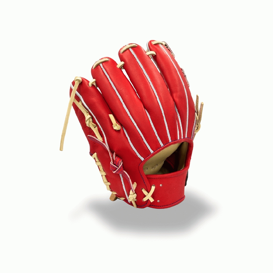 ![]() 【このグラブの大きさの目安】 ●赤線は土手部中央から人差し指先端までの長さを示しております。(1インチ=2.54センチ) ※天然皮革のため、革の伸び等で多少誤差が生じる場合もございます。 |