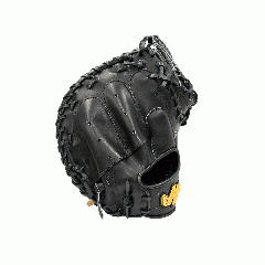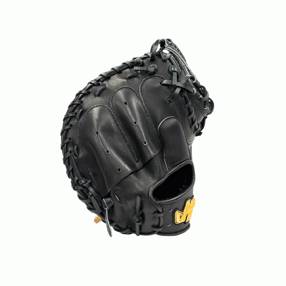 【このミットの大きさの目安】●青線は親指側の長さ、黄線は小指側の長さを示しております。(1インチ=2.54センチ) ※天然皮革のため、革の伸び等で多少誤差が生じる場合もございます。 |
