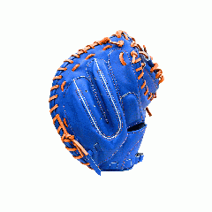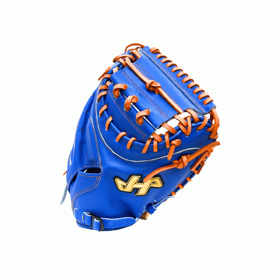 【このミットの大きさの目安】●青線は親指側の長さ、黄線は小指側の長さを示しております。(1インチ=2.54センチ) ※天然皮革のため、革の伸び等で多少誤差が生じる場合もございます。 |