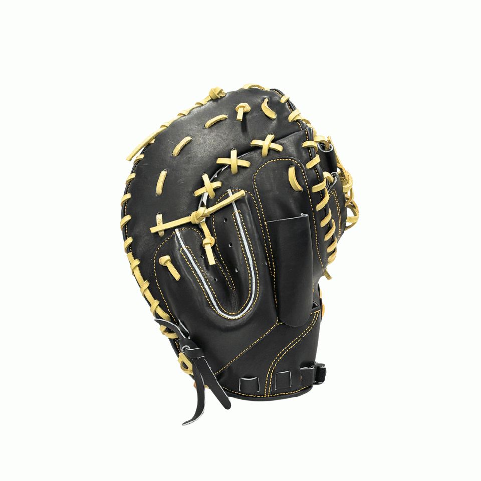 ![]() 【このミットの大きさの目安】 ●青線は土手部中央から人差し指先端までの長さを示しております。(1インチ=2.54センチ) ※天然皮革のため、革の伸び等で多少誤差が生じる場合もございます。 |