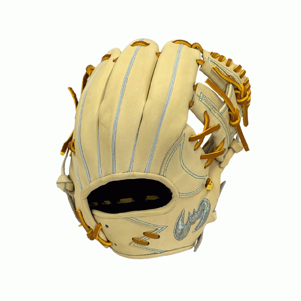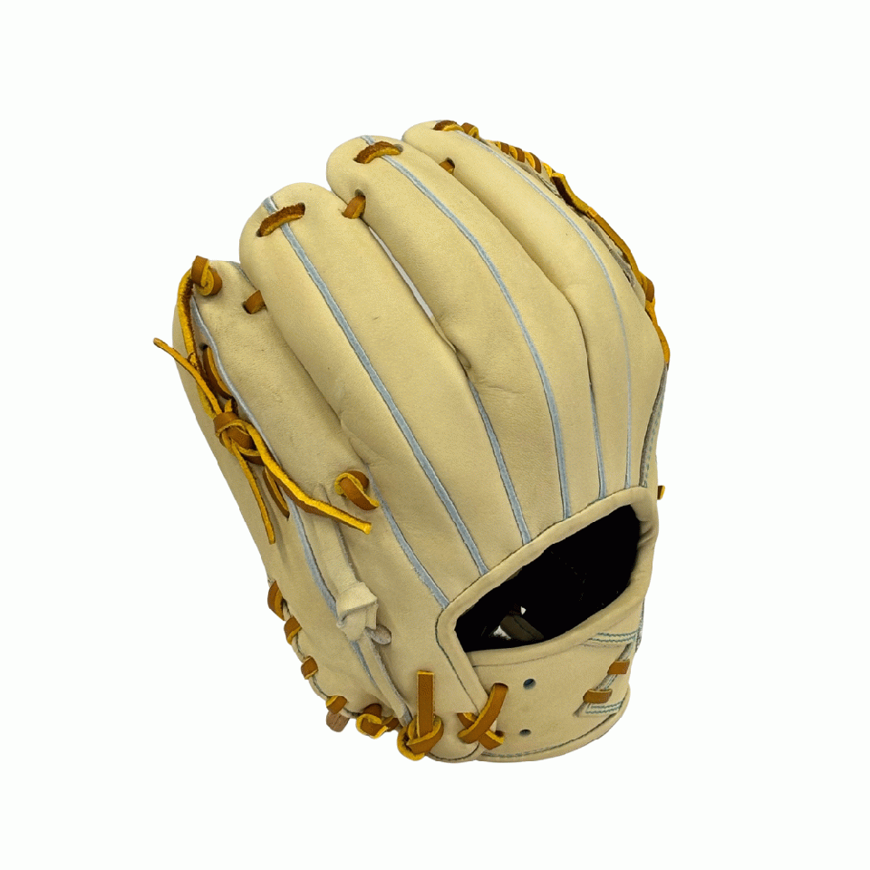 ![]() 【このグラブの大きさの目安】 ●赤線は土手部中央から人差し指先端までの長さを示しております。(1インチ=2.54センチ) ※天然皮革のため、革の伸び等で多少誤差が生じる場合もございます。 |