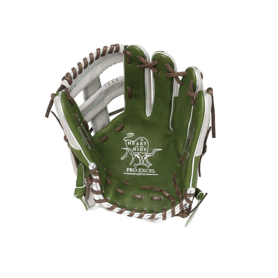 ![]() 【このグラブの大きさの目安】 ●赤線は土手部中央から人差し指先端までの長さを示しております。(1インチ=2.54センチ) ※天然皮革のため、革の伸び等で多少誤差が生じる場合もございます。 |