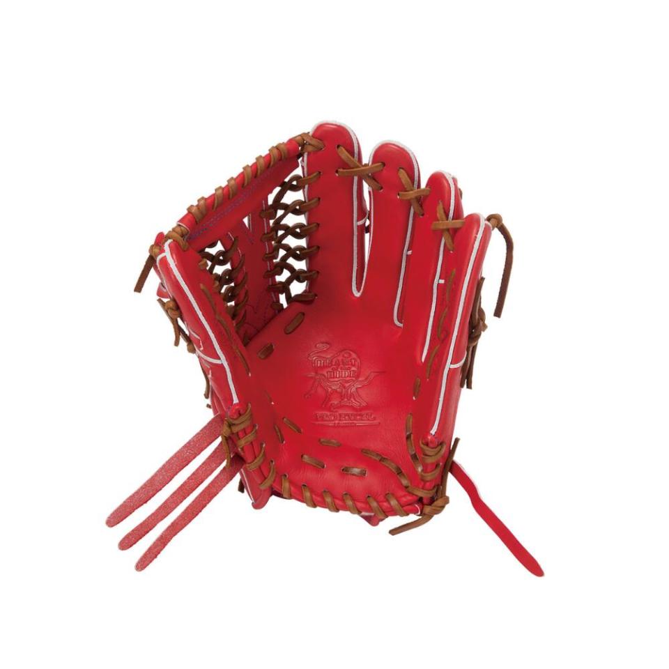 ![]() 【このグラブの大きさの目安】 ●赤線は土手部中央から人差し指先端までの長さを示しております。(1インチ=2.54センチ) ※天然皮革のため、革の伸び等で多少誤差が生じる場合もございます。 |