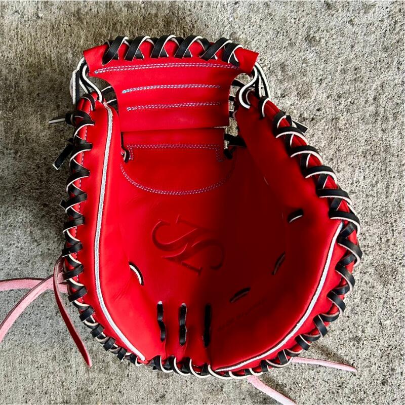 【このミットの大きさの目安】★上記表示の長さはヒンジ部の端からウェブ先端まで捕球面に沿っての寸法です。 ※天然皮革のため、革の伸び等で多少誤差が生じる場合もございます。 ■大きさの基準 ・29cm…少年用標準 30cm…小さめ 31cm…中間 32cm…大きめ ・弊社取扱いミットの大きさを基準にしております。 ・ミットの形状によって見た目の大きさの印象は変わります。基準は目安としてお考えください。 |