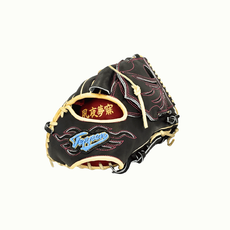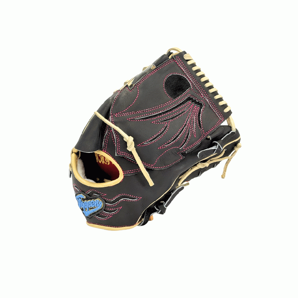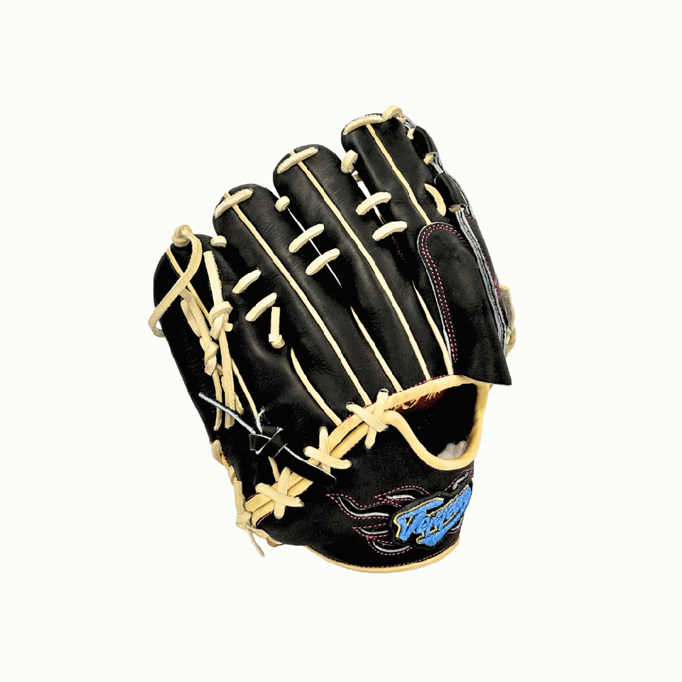 ![]() 【このグラブの大きさの目安】 ●赤線は土手部中央から人差し指先端までの長さを示しております。(1インチ=2.54センチ) ※天然皮革のため、革の伸び等で多少誤差が生じる場合もございます。 |