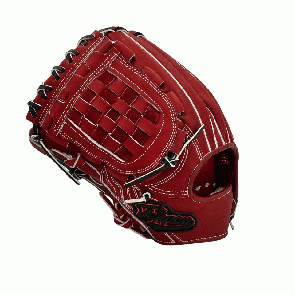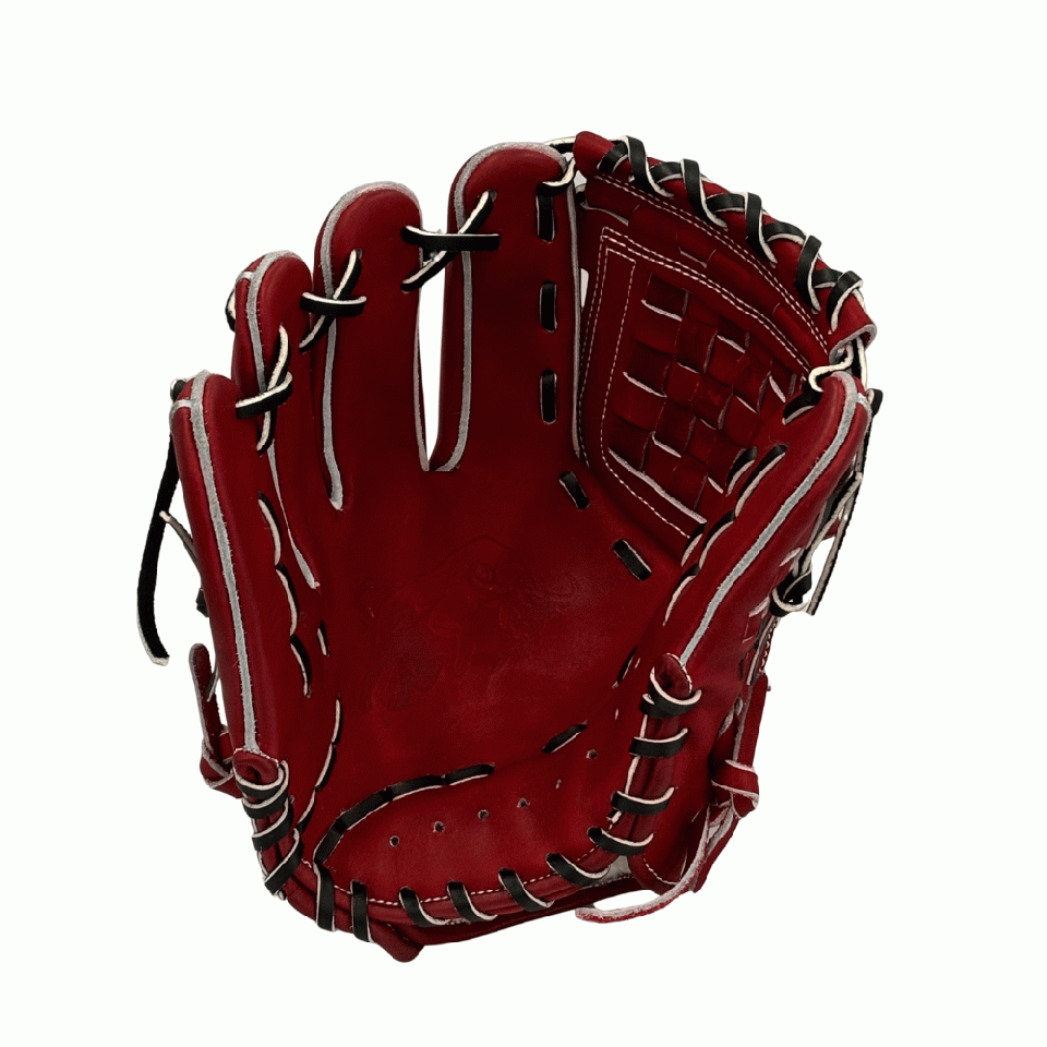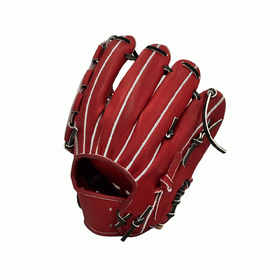 ![]() 【このグラブの大きさの目安】 ●赤線は土手部中央から人差し指先端までの長さを示しております。(1インチ=2.54センチ) ※天然皮革のため、革の伸び等で多少誤差が生じる場合もございます。 |