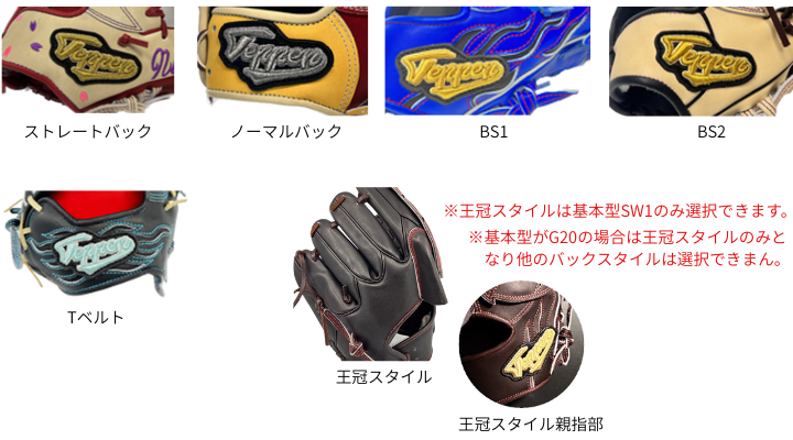 ※野球規則により①、②、⑲、⑳は投手用グラブには不可となります。