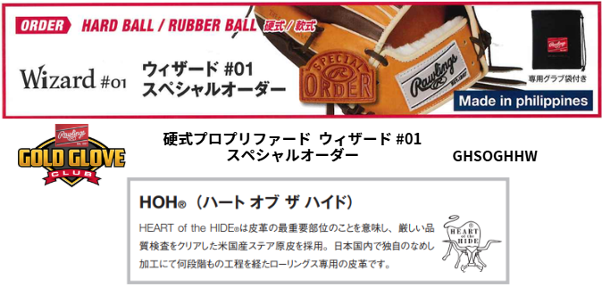 | 種類 | ローリングス 硬式オーダーグラブ≪プロプリファード ウィザード♯01≫ |